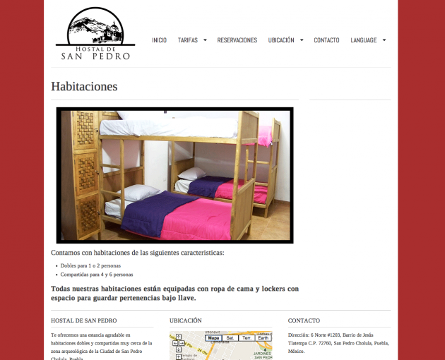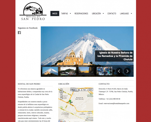 Este es un trabajo de diseño y creación de un nuevo sitio web informativo en dos idiomas, con sistema de reservaciones para el Hostal De San Pedro, ubicado en la ciudad de San Pedro Cholula, Puebla, México.